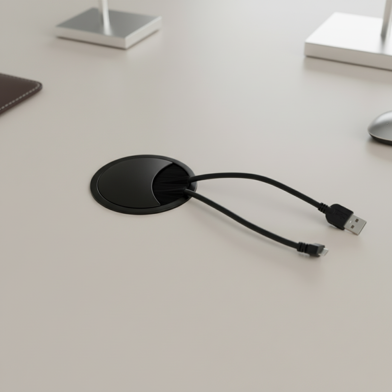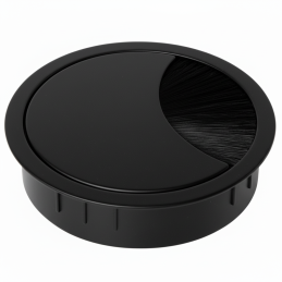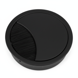 Průchodka je vyrobena z pevného kovu a vybavena otočným víčkem, které lze nastavit až ve 4 různých polohách. Díky tomu si otvor jednoduše přizpůsobíte směru vedení kabelů. Protiprachový kartáč chrání před nečistotami a zároveň zajišťuje, aby kabely pevně držely na svém místě.