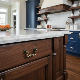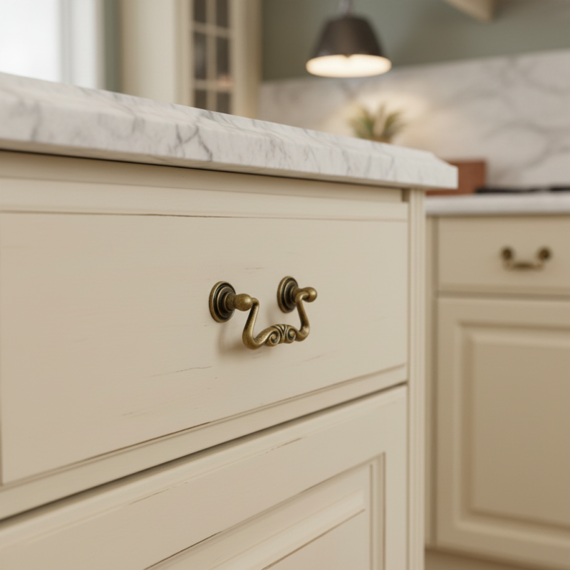 Úchytka MATILDA v povrchové úpravě staromosaz je nádherným doplňkem pro klasický, vintage nebo venkovský styl nábytku. Její tvar vychází z tradičních historických úchytů – s propracovanými křivkami, jemnými detaily a charakteristickým závěsným provedením.