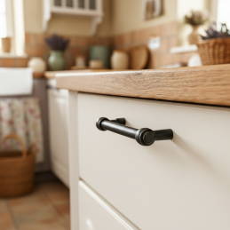 Rustikální rukojeť v černé barvě dostupná v 9 velikostech.
