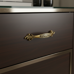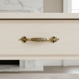 Elegantní nábytková úchytka KAMILA v provedení staromosaz je stylovým doplňkem pro klasický, rustikální i vintage nábytek. Ozdobné detaily a jemně patinovaný povrch dodávají nábytku luxusní a nadčasový charakter.