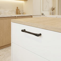 Kovová úchytka TAMPA v provedení staročerná zaujme svým jemně patinovaným, ručně působícím vzhledem. Povrchová úprava s efektem opotřebení dodává nábytku autentický rustikální charakter a skvěle se hodí do industriálních, vintage i klasických interiérů.