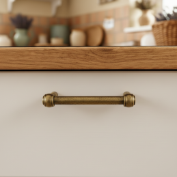 Úchytka  RUSTICALE je elegantní kovová klika s nostalgickým nádechem a robustním zpracováním, ideální pro interiéry ve venkovském, industriálním nebo vintage stylu. Její válcovité tělo se zaoblenými konci působí nenápadně, přesto dodává nábytku osobitý charakter.