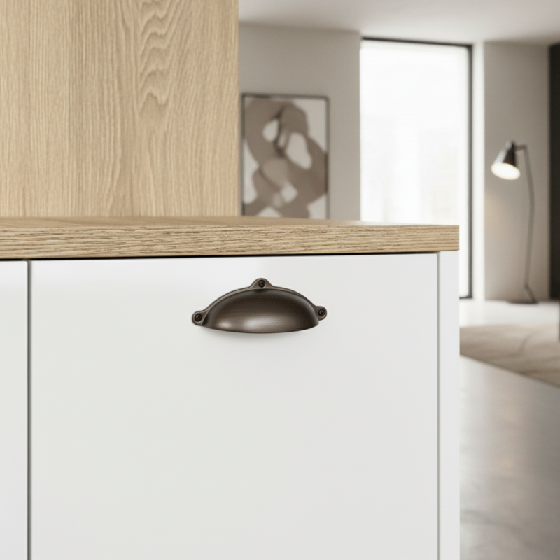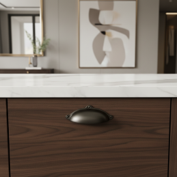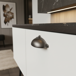 Úchytka MELANIE v titanové povrchové úpravě představuje moderní, elegantní a univerzální doplněk do interiéru. Její ikonický „miskový“ tvar nabízí pohodlné uchopení, zatímco titanový odstín dodává nábytku sofistikovaný, jemně metalický vzhled. Tato barevná varianta je mimořádně oblíbená pro svou schopnost harmonicky ladit se dřevem, bílými povrchy či tmavými moderními dekory.