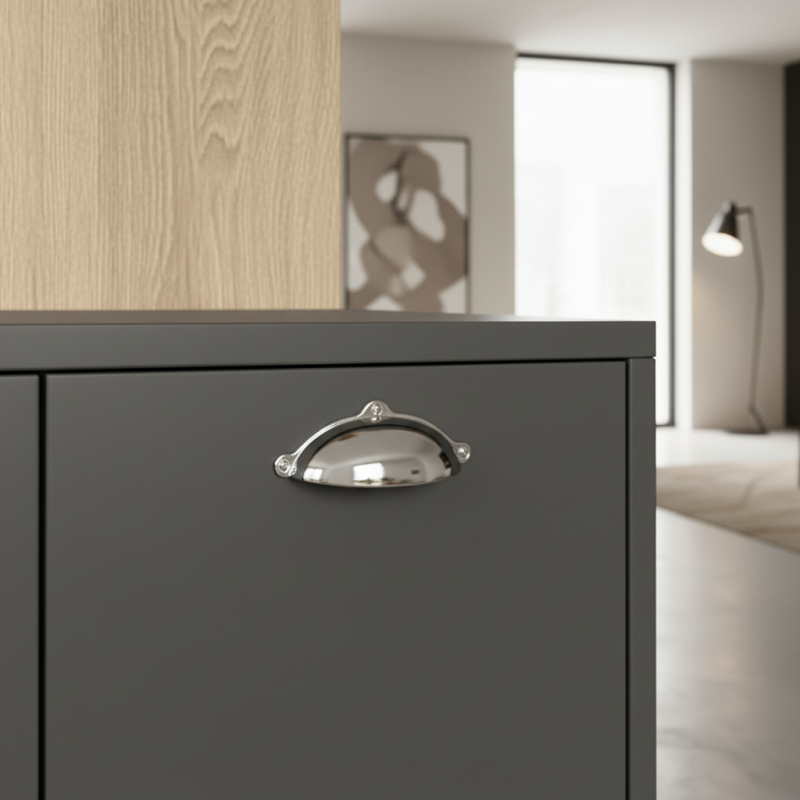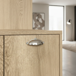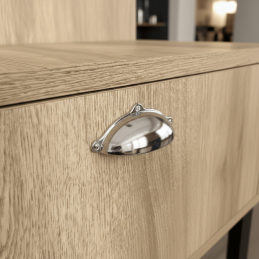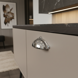 Úchytka MELANIE v lesklém chromu je moderním a zároveň elegantním doplňkem, který dodá vašemu nábytku čistý, luxusní a nadčasový vzhled. Oblý „miskový“ tvar úchytky zajišťuje pohodlné a přirozené uchopení, zatímco vysoce lesklý chrom vytváří atraktivní zrcadlový efekt.