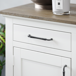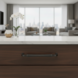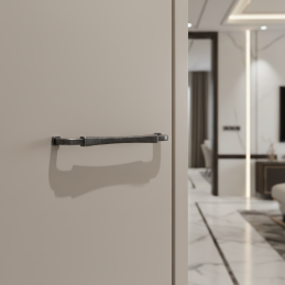 Úchytka NEUS v provedení černá patina spojuje tradiční tvar s moderním patinovaným povrchem, který dodává nábytku jedinečný řemeslný charakter. Jemně prohnuté madlo a dekorativní zakončení vytvářejí elegantní siluetu, která se výborně hodí do klasických, industriálních i rustikálních interiérů.