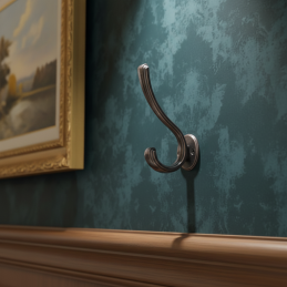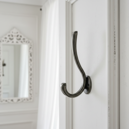 Elegantní nábytkový věšák ARLES v povrchové úpravě starostříbrná je ideálním doplňkem pro rustikální, vintage, industriální i klasické interiéry. Jemné profilování a kvalitní kovové provedení mu dodávají ušlechtilý, mírně „ošoupaný“ vzhled, který krásně ladí s masivním nábytkem i moderními dvířky se starožitným akcentem.