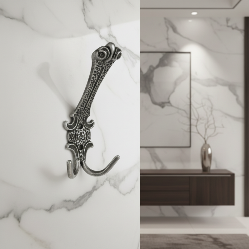 Věšák VERDI MAXI v provedení starobronz představuje spojení klasického designu, dekorativních detailů a mimořádné pevnosti. Jeho bohatě tvarované linie a reliéfní ornamenty vytvářejí dojem ručně kovaného prvku, který okamžitě dodá interiéru osobitost a šarm.