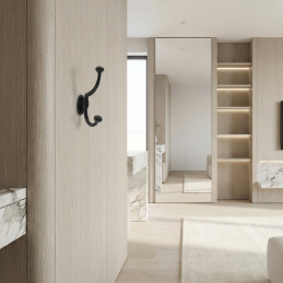 Rustikální věšák PLUTO v moderním provedení černá matná spojuje klasický tvar s nadčasovým minimalistickým vzhledem. Dvojitý háček poskytuje praktický prostor pro zavěšení oblečení, kabelek, batohů či doplňků, přičemž matná povrchová úprava působí elegantně a nenápadně.