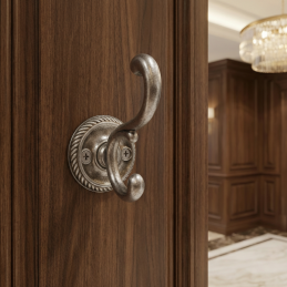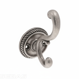 Rustikální věšák GALILEO v elegantním provedení starostříbrná je stylovým a funkčním doplňkem do klasických i rustikálně laděných interiérů. Bohatě tvarovaný dvojitý háček v kombinaci s dekorativní kruhovou rozetou dodává věšáku tradiční charakter a výrazný vizuální efekt.