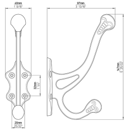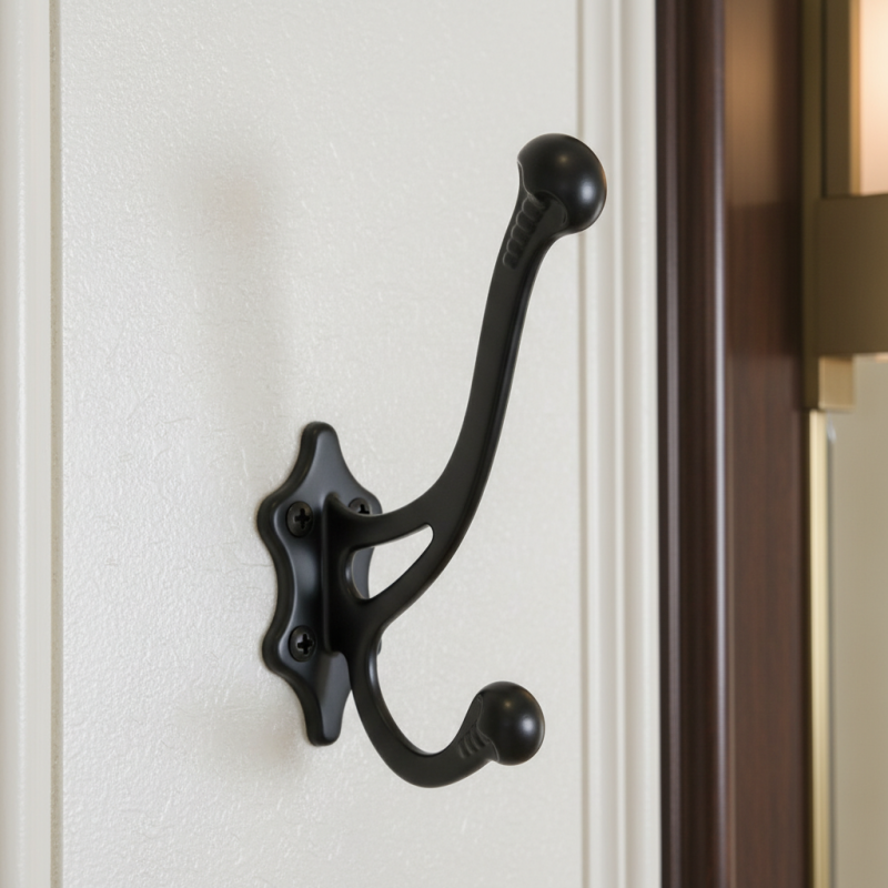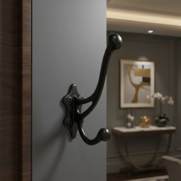 Díky dvojháčkovému provedení nabízí praktické řešení pro zavěšení kabátů, bund, tašek či doplňků. Pevná kovová konstrukce zajišťuje stabilitu a dlouhodobou odolnost při každodenním používání.