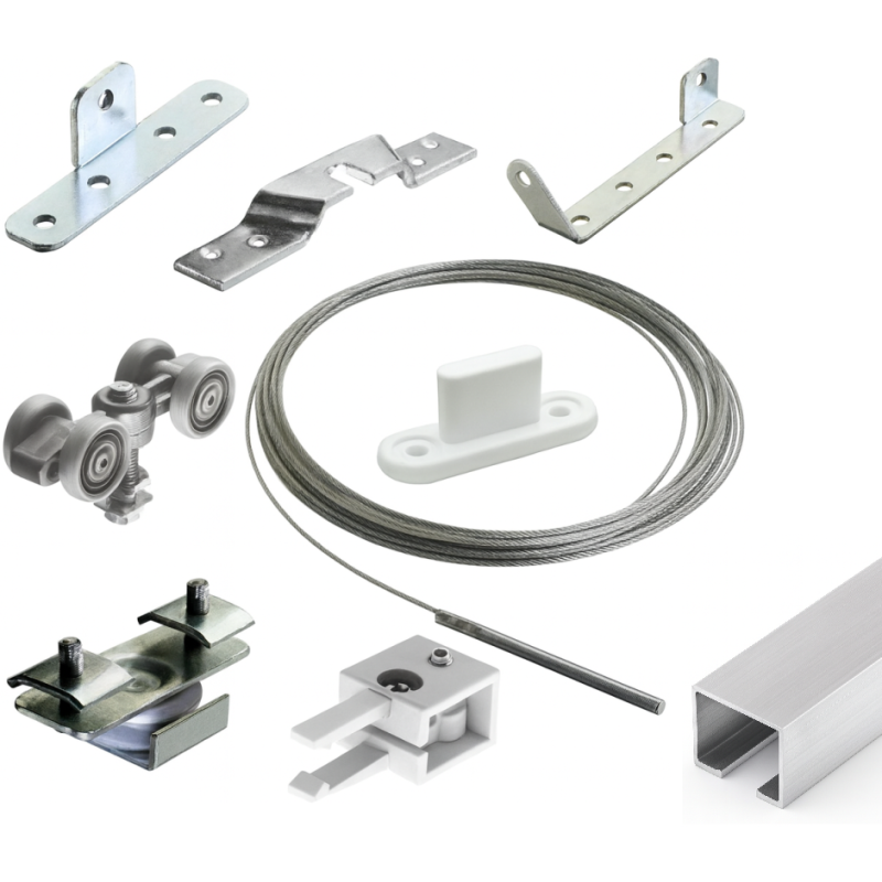 Veškeré potřebné příslušenství pro montáž je součástí sady, takže získáte kompletní řešení pro instalaci posuvného systému.