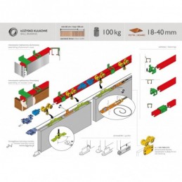 Celý systém je určen pro dveře s maximální hmotností 100 kg a je vhodný pro panely o tloušťce 18 - 40 mm.