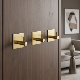 Jednoduchý, elegantní a mimořádně praktický samolepicí věšák GINNA v provedení zlatá broušená je ideálním řešením do koupelny, kuchyně či na jakékoli místo, kde nechcete nebo nemůžete vrtat do zdi. Nadčasový broušený zlatý povrch dodá prostoru luxusní vzhled a zároveň zachová minimalistický styl.