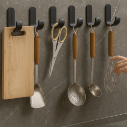 • 🔩 Jednoduchá instalace – stačí odstranit ochrannou fólii a přilepit věšák na čistý, suchý povrch bez nutnosti vrtání.
