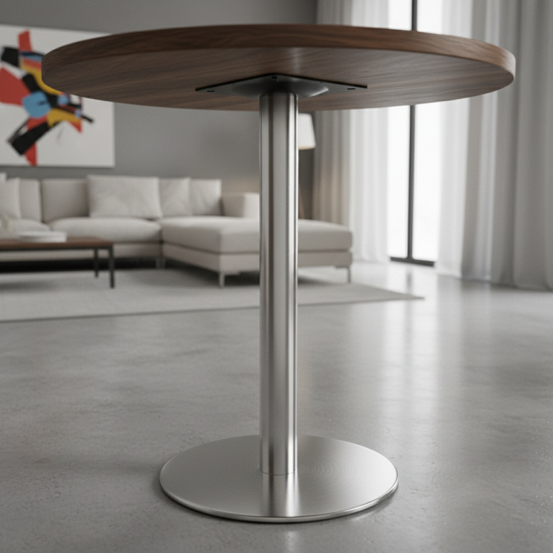 Elegantní kulatá stolová podnož SOUND v provedení broušená nerez nabízí moderní vzhled a stabilitu pro menší i středně velké stolové desky. Díky široké kulaté základně a pevné konstrukci je vhodná do domácností, kaváren, restaurací či kanceláří.