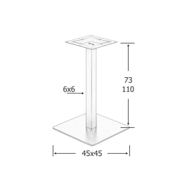 Dostupná je ve dvou výškách – 730 mm (klasické sezení) nebo 1100 mm (barové sezení). Robustní základna i ocelová středová noha zaručují, že podnož spolehlivě unese dřevěné, laminátové i kamenem dýhované stolové desky.