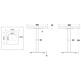 Maximální doporučený rozměr stolové desky: 800 × 800 mm