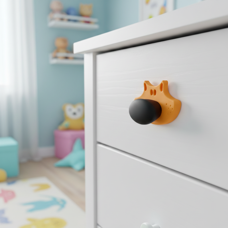 Úchytka HELLO v kombinaci žluté a černé barvy je navržena s ohledem na potřeby dětí – její měkký silikonový materiál je bezpečný, příjemný na dotek a eliminuje riziko poranění při nárazu. Zaoblený tvar a flexibilita materiálu z ní dělají ideální volbu pro dětské pokoje, školky či herny.