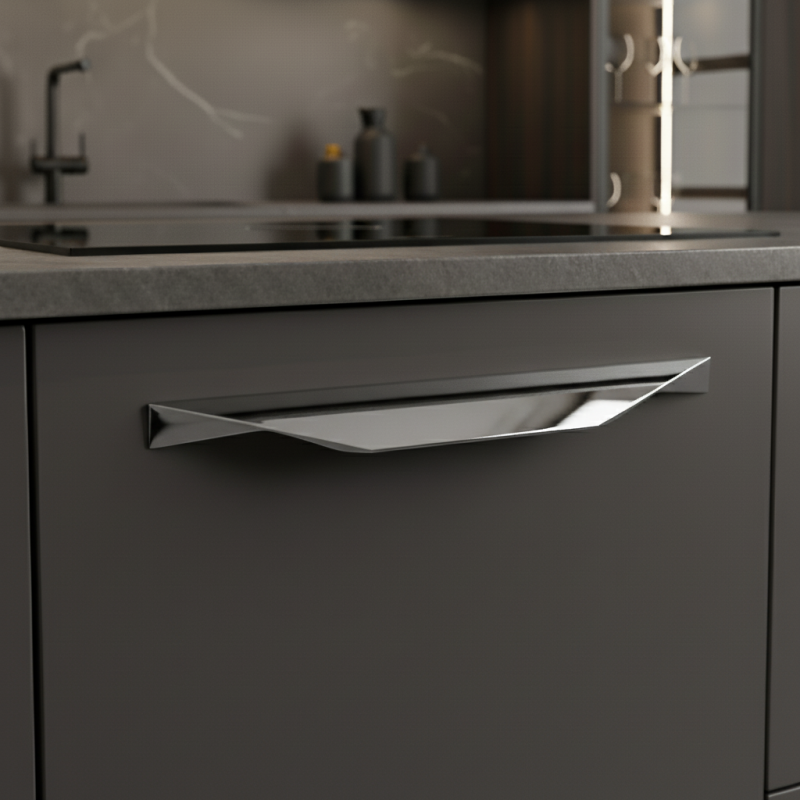 Úchytka VALENCIA v provedení lesklý chrom přináší čistý, moderní a elegantní vzhled, který dokonale doplní světlé i tmavé nábytkové dekory. Její výrazné šikmé linie a ostré hrany vytvářejí dynamický design, který působí luxusně a nadčasově. Lesklý chrom dodává úchytce mimořádně čistý a zářivý efekt, ideální zejména pro moderní kuchyně, koupelny či reprezentativní nábytkové sestavy.