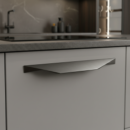 Úchytka VALENCIA v elegantním provedení broušený grafit přináší do interiéru moderní luxus a výrazný designový prvek. Její ostře řezané linie a charakteristický tvar vytvářejí sofistikovaný vzhled, který dokonale doplní moderní nábytek, kuchyňské linky či šatní skříně.