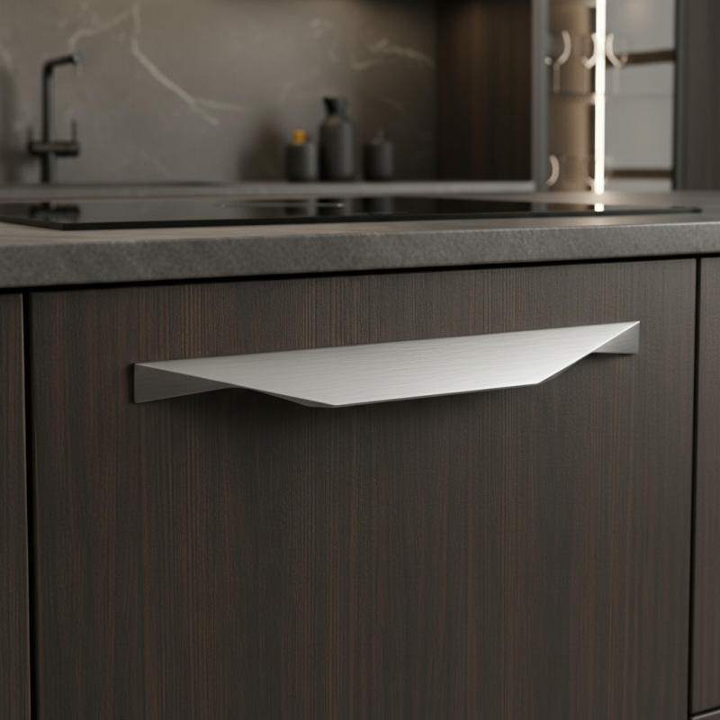 Úchytka VALENCIA v elegantním provedení broušená nerez představuje výjimečnou kombinaci moderního designu a dokonalé funkčnosti. Její dynamické, ostře řezané linie působí luxusně a zároveň minimalisticky, což z ní dělá ideální prvek pro moderní kuchyně, šatní skříně, koupelnový nábytek i nadčasové interiéry.