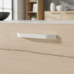 Úchytka ZANAR v provedení bílá matná přináší svěží, čistý a minimalistický výraz, který se dokonale hodí do světlých, skandinávských i moderních interiérů. Mírně zalomený hranatý tvar působí elegantně a moderně, zároveň poskytuje pohodlný úchop při každodenním používání.