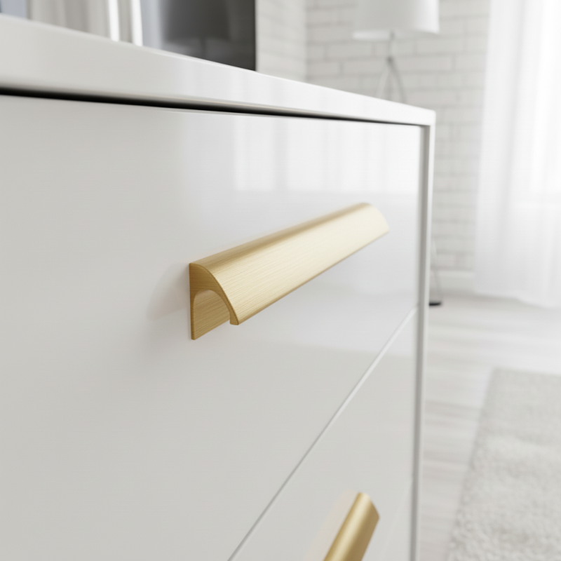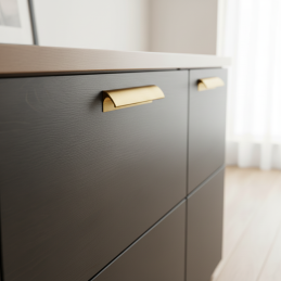 Zlatá broušená barva krásně vynikne na tmavých i světlých površích, výborně se kombinuje s přírodním dřevem, matnými laky i moderními dekory. Úchytka je ideální pro kuchyně, koupelny, šatny, komody i designový nábytek. Ergonomický tvar zajišťuje pohodlný úchop a příjemné každodenní používání.