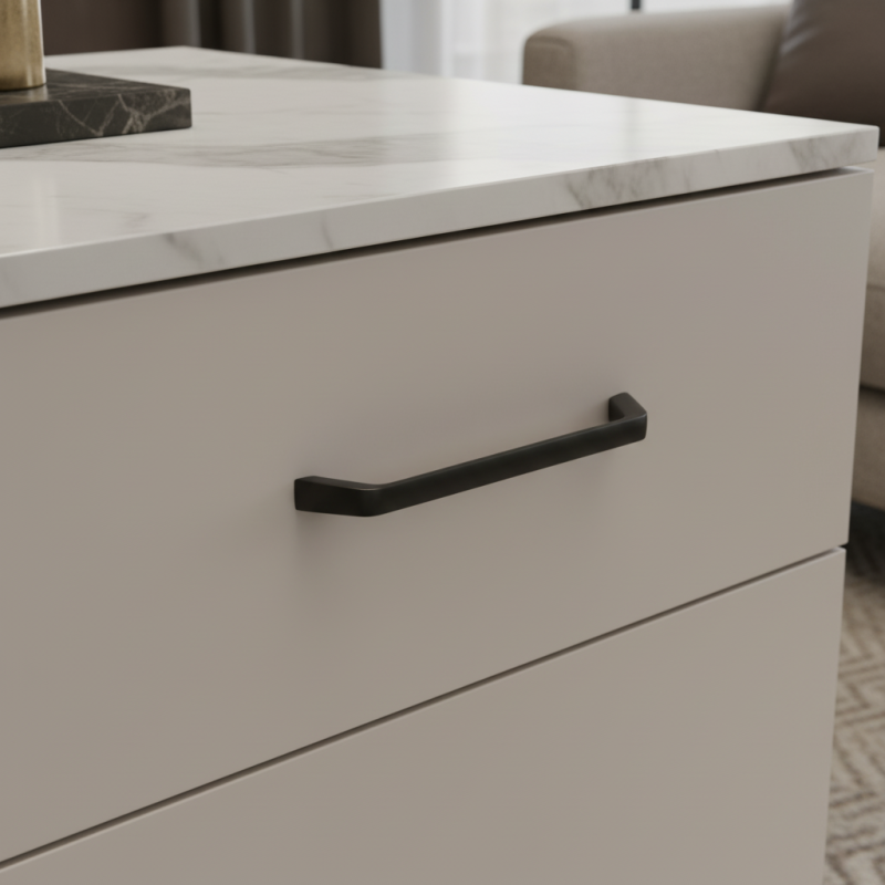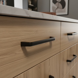 Úchytka SAMARA v černé matné barvě je ideální volbou pro ty, kteří hledají moderní, čistý a designově výrazný detail s důrazem na kvalitu, funkčnost a nadčasový vzhled.