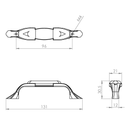 Rozteč montážních děr: 96 mm – univerzálně použitelné u většiny nábytkových dvířek a zásuvek