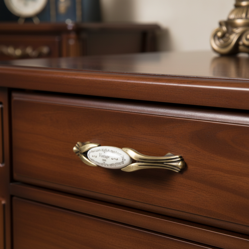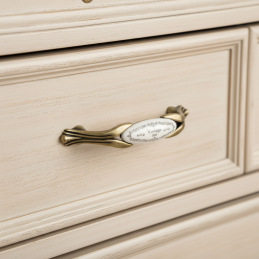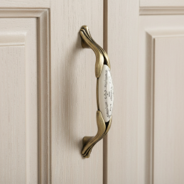 Elegantní porcelánová úchytka FRIDA ve starozlatém provedení je dokonalým doplňkem pro každý interiér, který touží po nádechu noblesy a retro elegance. Jemný porcelán s dekorativním vintage motivem je zasazen do kovového korpusu se starozlatou patinou, což vytváří harmonický a výrazný designový prvek.