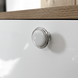 Elegantní úchytka FRESNO v chromovém provedení spojuje kvalitní kovové tělo s keramickým dekorem, čímž vytváří nadčasový a univerzální doplněk vhodný do moderně i klasicky laděných interiérů. Její harmonické tvarování a jemné linie dodávají nábytku noblesu, zatímco odolné materiály zaručují dlouhou životnost a pohodlné používání.