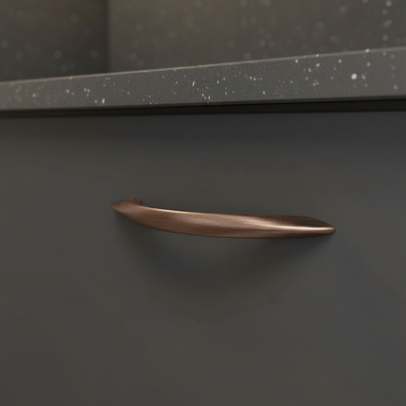 Tmavá měď spojuje moderní industriální vzhled s teplou elegancí. Úchytka KINGSTON v tomto provedení dodá nábytku charakter a sofistikovanost, zároveň působí nadčasově a snadno se kombinuje se širokou paletou barev a materiálů.