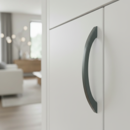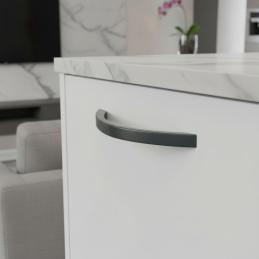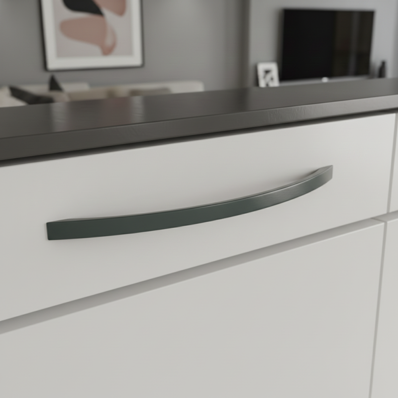 Elegantní úchytka EMILIO v moderním provedení zelená matná je výjimečným doplňkem pro nábytek, který má zaujmout na první pohled. Tento netradiční, ale velmi stylový odstín dodá kuchyni, koupelně, komodě či obývací sestavě svěží designový akcent.
