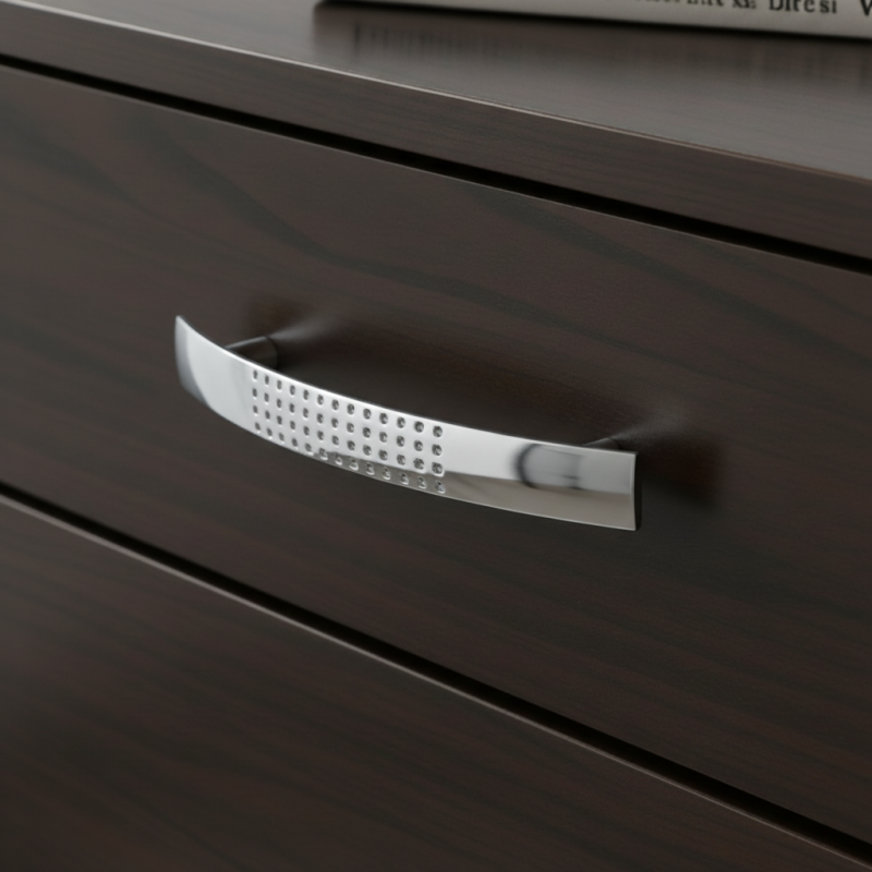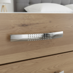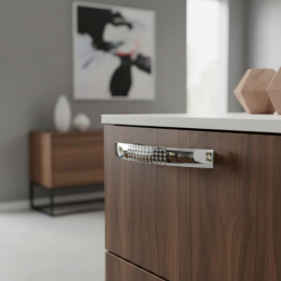 Úchytka VELLEN v lesklém chromovém provedení je ideální volbou pro všechny, kteří chtějí svému nábytku dodat moderní, čistý a zářivý vzhled. Jemně prohnutý tvar doplněný o dekorativní strukturu drobných teček vytváří efektní designový detail, který vynikne v kuchyních, koupelnách i obývacích prostorech.