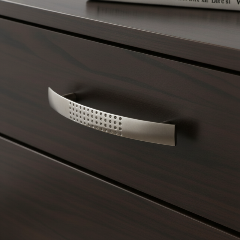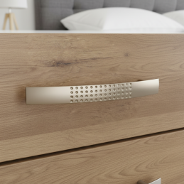 Úchytka VELLEN v niklovém matném provedení působí elegantně, nadčasově a velmi univerzálně. Jemně prohnutý tvar se pohodlně uchopuje a dekorativní struktura drobných teček dodává úchytce zajímavý vizuální efekt i praktickou protiskluzovou funkci. Ideální do moderních i minimalistických interiérů.