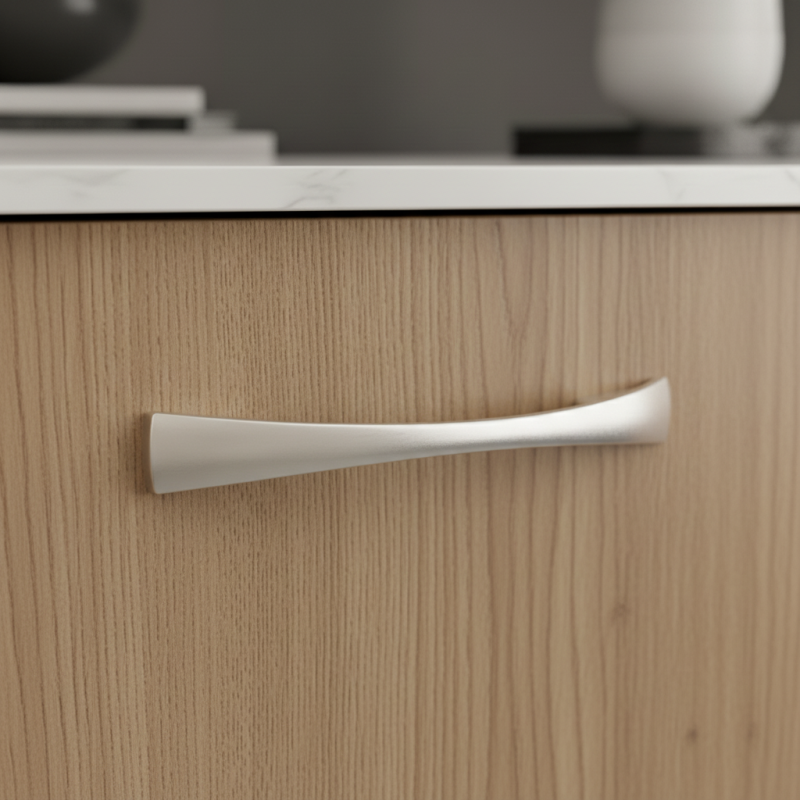 Úchytka SIMPLO v provedení matný chrom je ideálním doplňkem pro moderní, minimalistické i klasické interiéry. Jemně prohnutý tvar působí elegantně a lehce, zatímco matný chromový povrch vytváří nadčasový, dokonale univerzální vzhled vhodný ke světlým i tmavým dekorům nábytku.