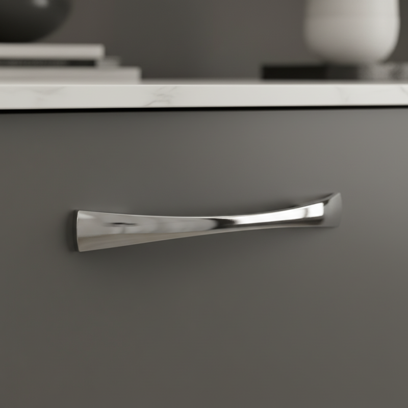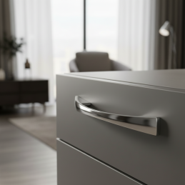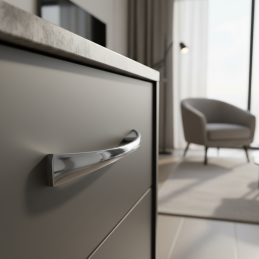 Úchytka SIMPLO v lesklém chromovém provedení přináší čistý, moderní a nadčasový vzhled, který dokonale doplní kuchyňský, koupelnový i obývací nábytek. Její jemně prohnutý tvar působí elegantně a v kombinaci s vysokým leskem dodává nábytku svěží a luxusní efekt.
