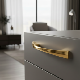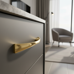 Úchytka SIMPLO v lesklém zlatém provedení je stylovým doplňkem, který dodá nábytku elegantní a exkluzivní charakter. Její jemně prohnutý tvar působí příjemně a decentně, zatímco lesklý zlatý povrch přidává výraznou prémiovost a luxusní efekt – ideální do interiérů, které chtějí zaujmout už na první pohled.
