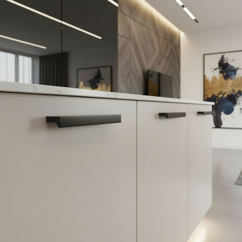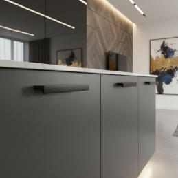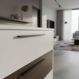 Elegantní a moderní úchytka SAXO v provedení černá matná je ideálním řešením pro nadčasové i minimalistické interiéry. Je vyrobena z kvalitního hliníku, který zaručuje pevnost, nízkou hmotnost a dlouhou životnost. Matné černé provedení dodává nábytku luxusní a výrazný vzhled.