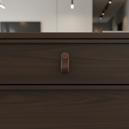 Elegantní kožená knopka CASE v hnědém provedení je stylovým doplňkem pro každý typ nábytku. Kombinuje pravou kůži s kvalitním kovovým prvkem a výrazným dekoračním prošíváním, které podtrhuje její řemeslný charakter. Díky měkkému ohybu kůže poskytuje pohodlný úchop a zároveň působí esteticky a nadčasově.