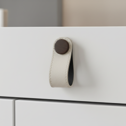 Elegantní kožená knopka CASE v bílém provedení je moderním a zároveň jemným doplňkem vhodným pro různé typy nábytku. Kombinuje pravou kůži s kvalitním kovovým prvkem v tmavém provedení, který vytváří pěkný kontrast. Dekorativní prošívání dodává úchytce řemeslný a nadčasový charakter.