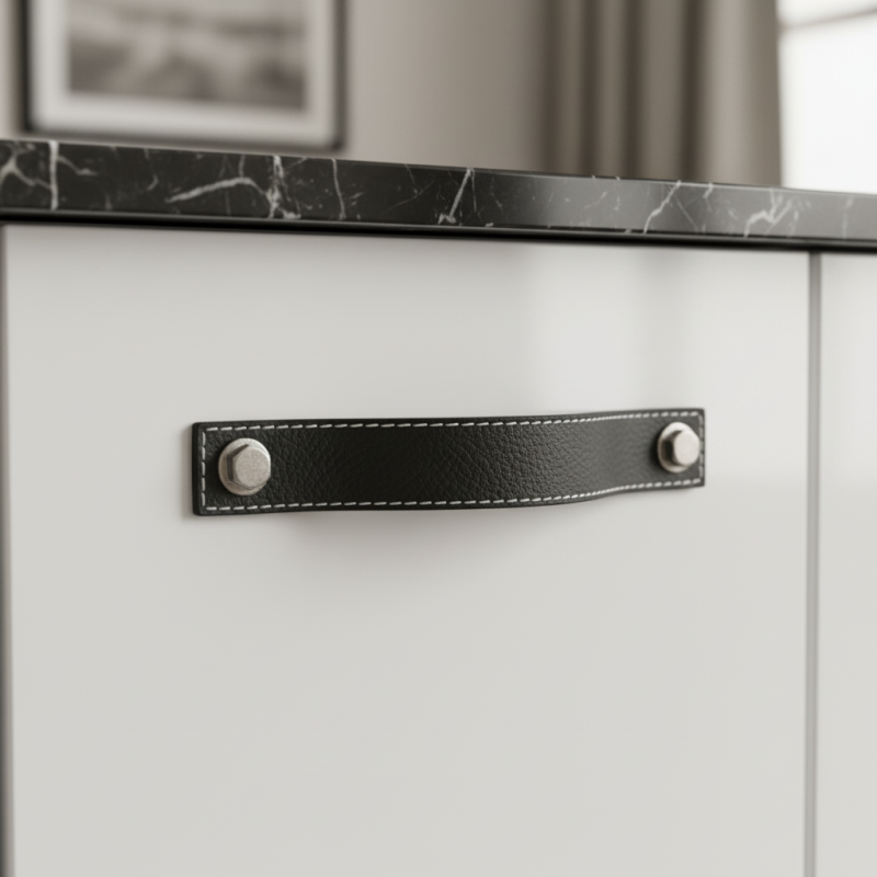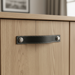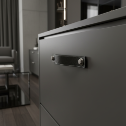 Elegantní kožená úchytka SAMSONITE je stylovým doplňkem vhodným pro moderní i industriálně laděný nábytek. Vyznačuje se masivním vzhledem, kvalitním prošitím a kovovými šrouby, které dodávají úchytce výrazný charakter.
