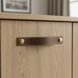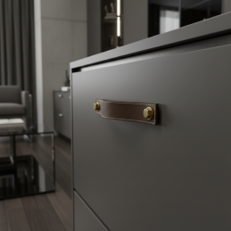 Elegantní a pevné kožené madlo SAMSONITE v hnědém provedení dodá nábytku příjemný přírodní a zároveň luxusní charakter. Kombinuje kvalitní pravou kůži s masivními kovovými šrouby, které jí dodávají industriální podtón.