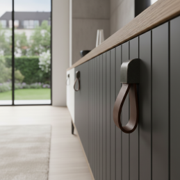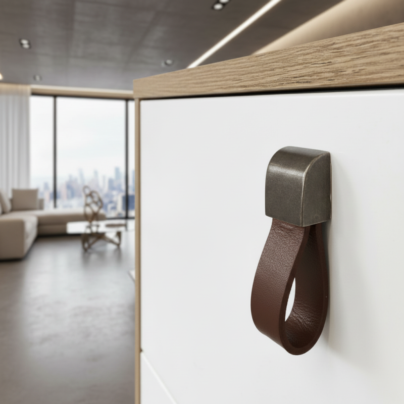 Úchytka je ideálním doplňkem pro moderní, venkovský i industriální nábytek a díky přirozené flexibilitě kůže je pohodlná a praktická při každodenním používání.