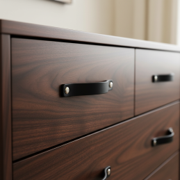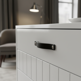 Exkluzivní úchytka vyrobená z pravé hovězí kůže, v elegantním černém provedení. Na rozdíl od modelu DOLCE OVAL má tato verze rovné konce, což jí dodává modernější a čistší vzhled. Díky své pružnosti je velmi univerzální a lze ji použít jako klasickou úchytku i jako kožený knop (při použití pouze jednoho úchytu).