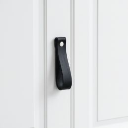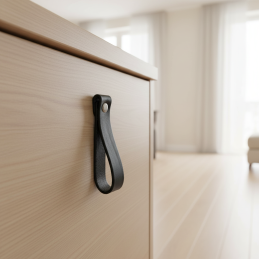 Stylová kožená úchytka DOLCE Maxi v elegantní černé barvě dodá nábytku moderní, luxusní a zároveň měkký přírodní akcent. Díky větší délce působí výrazněji než verze Mini a je vhodná na skříňky, komody či zásuvky, kde chcete dosáhnout designového efektu.