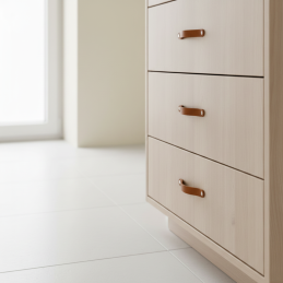 Exkluzivní úchytka vyrobená z pravé hnědé kůže v kombinaci s elegantní hliníkovou matnou koncovkou. Je příjemná na dotek, flexibilní a díky kvalitnímu zpracování dodá nábytku teplý, přírodní a designový vzhled. Hnědá kůže krásně ladí se dřevem i s moderními povrchy.