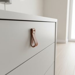 Kožená úchytka DOLCE Mini v hnědém provedení přináší do interiéru teplo, přirozenost a jemný designový akcent. Díky minimalistickému tvaru a příjemné textuře kůže je ideální volbou pro moderní i skandinávský styl zařízení.