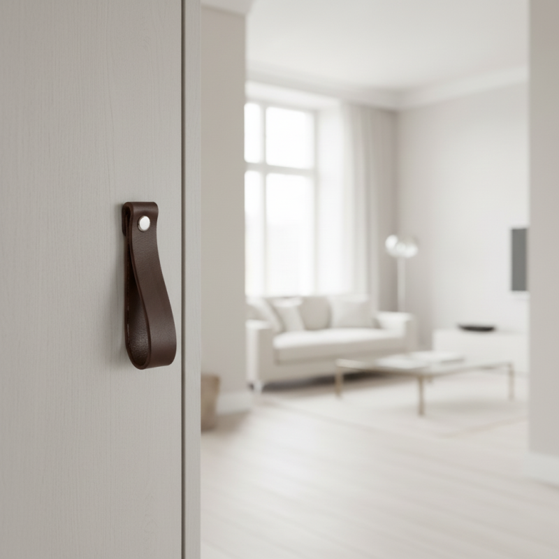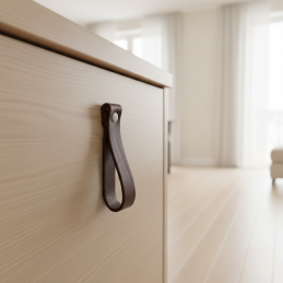 Kožená úchytka DOLCE Maxi v tmavě hnědém provedení působí elegantně, přirozeně a nadčasově. Pravá kůže dodává nábytku luxusní, hřejivý akcent a díky větší délce úchytka působí výrazněji, což ji činí ideální pro skříňky, komody či větší zásuvky. Tmavě hnědý odstín krásně ladí se dřevem, přírodními materiály i moderními povrchy.
