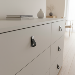Díky minimalistickému tvaru a prémiovým materiálům působí čistě, moderně a komfortně na dotek. Je vhodná pro kuchyně, skříňky, šatníky i komody v moderním, industriálním či skandinávském stylu.